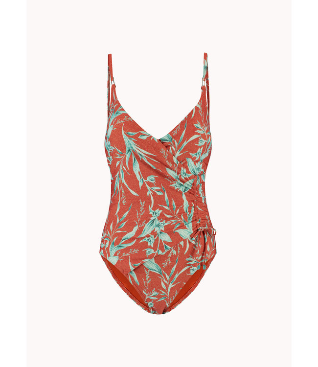 • Kleur: glitter roodbruin met turqoise print