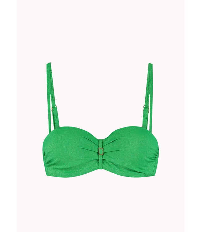 Model is 1,78 m en draagt maat 38B. Deze bikinitop biedt een subtiele lift, een mooi decolleté en laat je schouders prachtig uitkomen. Draagbaar als strapless, halter of met rechte schouderbandjes, zodat je zelf kiest wat jouw figuur het meest flatteert. De bikinitop heeft een goede ondersteuning door de beugel en voorgevormde cups. Zelfs strapless zit deze top nog stevig! Vanaf cup D heeft deze top bredere bandjes voor extra ondersteuning.