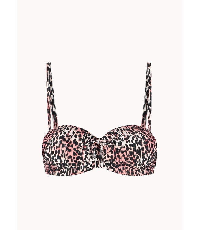 Model is 1,78 m en draagt maat 38B. Deze bikinitop biedt een subtiele lift, een mooi decolleté en laat je schouders prachtig uitkomen. Draagbaar als strapless, halter of met rechte schouderbandjes, zodat je zelf kiest wat jouw figuur het meest flatteert. De bikinitop heeft een goede ondersteuning door de beugel en voorgevormde cups. Zelfs strapless zit deze top nog stevig! Vanaf cup D heeft deze top bredere bandjes voor extra ondersteuning.