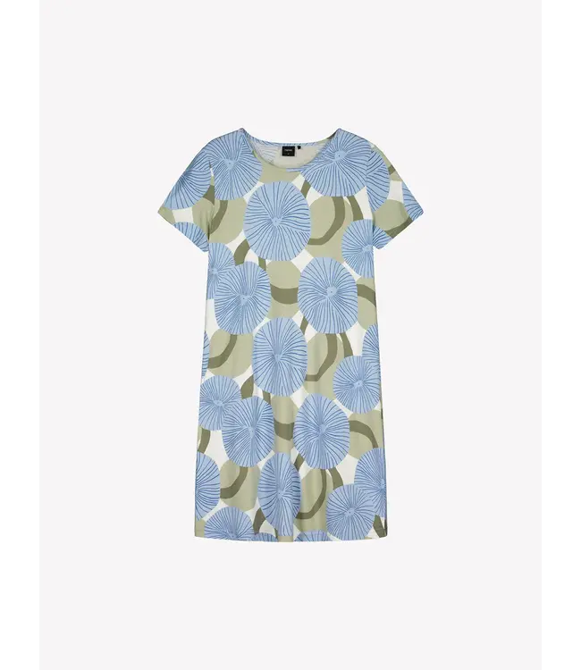 Korte Hedda-nachtjapon voor dames met een subtiel en fris lichtblauw patroon.