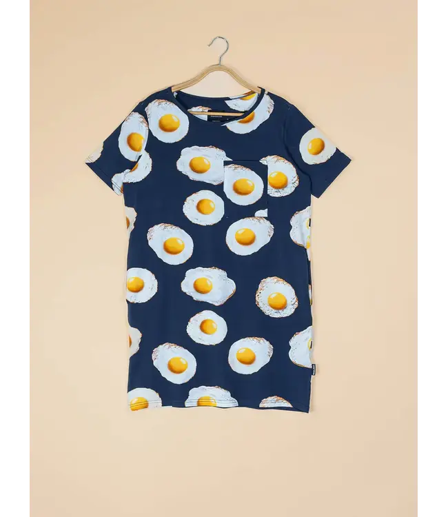 Lekker slapen wordt voortaan een eitje. Onze gebakken eieren print in navy blauw is gemaakt van superzacht biologisch katoen: vrije-uitloop-kwaliteit voor je huid. Zacht, comfy en met een print waar je vrolijk van opstaat. Met deze SNURK zit én lig je altijd gebakken.